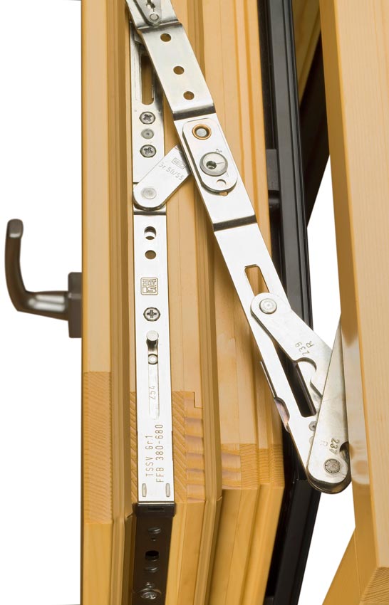 Okno je v celoti iz slovenskega lesa, ki je kvalitetno in cenjeno tako doma kot v tujini. Profil je impregniran in zaščiten s štirimi sloji barve. Okno ima skrito okovje priznanega proizvajalca Siegenia.