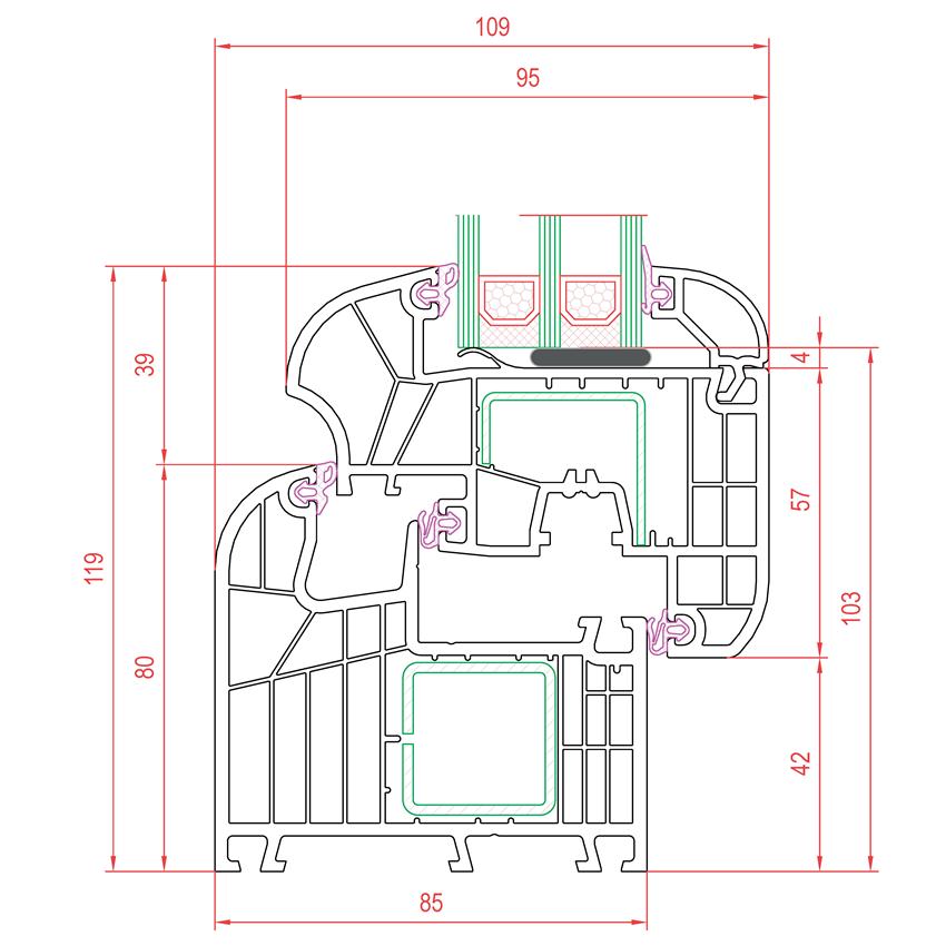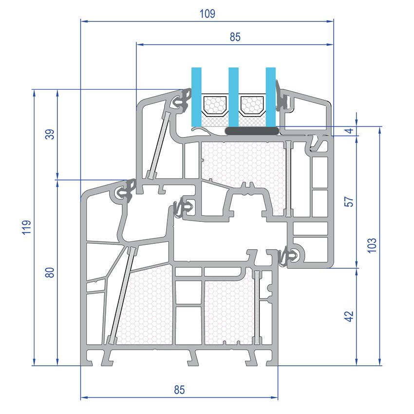 - debelina podboja: 85 mm, debelina stekla 109 mm